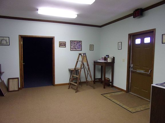 This property is located near the town square and is a brick building with handicap entrance. It is improved with large entry and hall, 2 rest rooms, large meeting room, and large room with kitchen attached with a pass thru. There are numerous closets for storage , the furnace, and hot water heater. There is a storage closet with large door to the spacious crawl space. There is sidewalks on two sides of the building and a nice shaded lawn area in the back. It is currently zoned as residential per city hall. The parking is street side. Many possibilities with this building. Call for a showing.