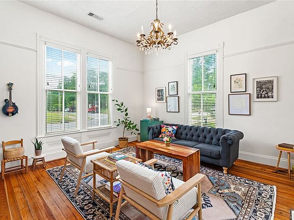 - Description: Soaring ceilings, original hardwood floors throughout, original fireplace/mantle, antique chandelier,Flooring: Wood