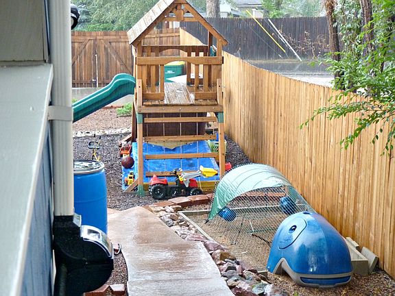 - Exterior Features: Garden Area, Professional Landscaping, Fence, Yard, Dog Run, Utility Shed