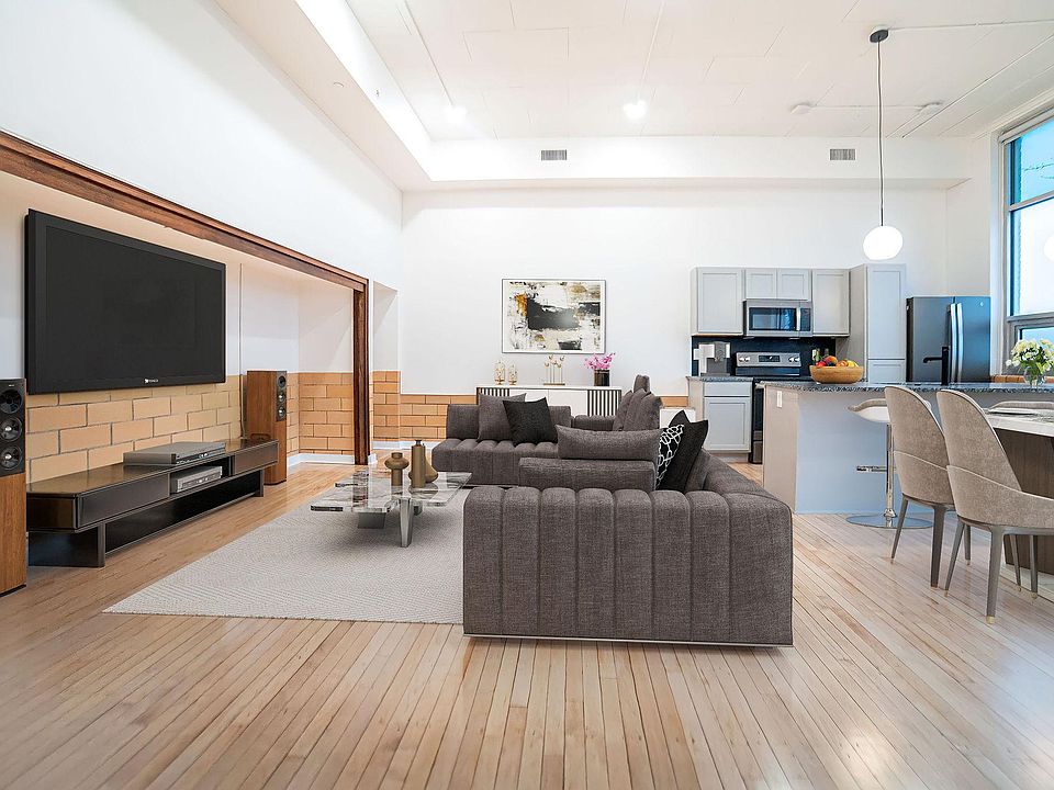 Originally built in 1938 as a neighborhood elementary school, the historic Central School building has recently been redeveloped into a 13-unit apartment building. Central School Apartments is located on the west side of downtown Atchison and within walking distance of multiple parks, grocery stores, and no less than a dozen independently owned and operated restaurants including Willie's Sports Pub, La Maria (Mexican), Daylight Donuts, Pete's Steak House, Domenique's Bakery, the Sunflower Coffee Shop, and Lopez de Mexico, just to name a few. Central School Apartments features a beautiful blend of art moderne and contemporary interior finishes, terrazzo and hardwood floors, granite countertops, slate toned GE appliances, private laundry facilities for each apartment, and the fastest internet available to any residential property in Atchison (Rainbow Fiber). Apartment 101 is on Central School's first floor with an eastern view of Atchison's architectural beauty, including Atchison Middle School, the County Courthouse, and the Presbyterian Church, just to name a few. Rent: $1,095 / month. Utilities: Electricity, water, gas, trash, and high speed fiber internet are charged to tenants at an additional flat rate of $200 / month. Term: Any term ranging from 6 months to 1 year is acceptable. Pets: Central School Apartments is pet friendly with a fenced in 15,000 sq ft lawn on the south side of the building. An additional $30 per month is charged for pet rent. Parking: A private parking lot for resident and guest use is available on the west side of the building. Storage Space: Available upon request, first come first serve. Security/Keys/Access: All four entrances to the building are secured at all times. Access is managed with electronic key fobs and a customized access code for each tenant. Indoor Mail Delivery: Mail will be delivered inside the building in the primary entrance vestibule. Interior Finishes: The building features a beautiful blend of art moderne and contemporary interior finishes including original terrazzo and hardwood floors, glazed block wall, granite countertops, and slate toned GE appliances. Garbage disposal, ice maker, microwave, and a washer/dryer are included with each unit.