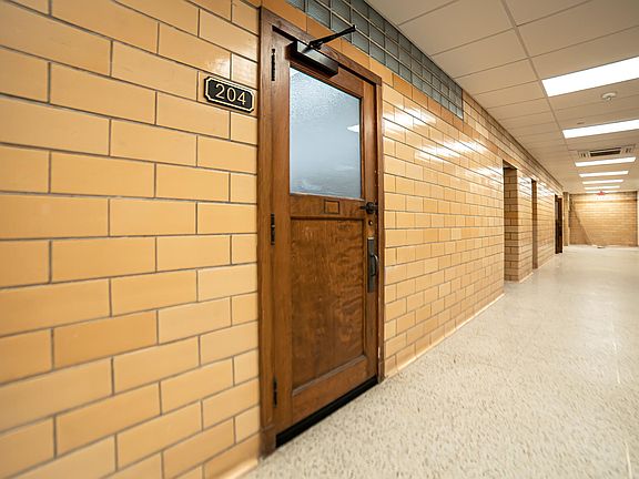 Originally built in 1938 as a neighborhood elementary school, the historic Central School building has recently been redeveloped into a 13-unit apartment building. Central School Apartments is located on the west side of downtown Atchison and within walking distance of multiple parks, grocery stores, and no less than a dozen independently owned and operated restaurants including Willie's Sports Pub, La Maria (Mexican), Daylight Donuts, Pete's Steak House, Domenique's Bakery, the Sunflower Coffee Shop, and Lopez de Mexico, just to name a few. Central School Apartments features a beautiful blend of art moderne and contemporary interior finishes, terrazzo and hardwood floors, granite countertops, slate toned GE appliances, private laundry facilities for each apartment, and the fastest internet available to any residential property in Atchison (Rainbow Fiber). Rent: $1,295 / month. Utilities: Electricity, water, gas, trash, and high speed fiber internet are charged to tenants at an additional flat rate of $200 / month. Term: Any term ranging from 6 months to 1 year is acceptable. Pets: Central School Apartments is pet friendly with a fenced in 15,000 sq ft lawn on the south side of the building. An additional $30 per month is charged for pet rent. Parking: A private parking lot for resident and guest use is available on the west side of the building. Storage Space: Available upon request, first come first serve. Security/Keys/Access: All four entrances to the building are secured at all times. Access is managed with electronic key fobs and a customized access code for each tenant. Indoor Mail Delivery: Mail will be delivered inside the building in the primary entrance vestibule. Interior Finishes: The building features a beautiful blend of art moderne and contemporary interior finishes including original terrazzo and hardwood floors, glazed block wall, granite countertops, and slate toned GE appliances. Garbage disposal, ice maker, microwave, and a washer/dryer are included with each unit.