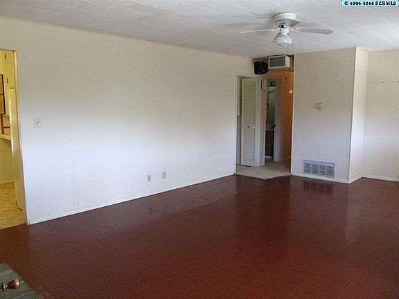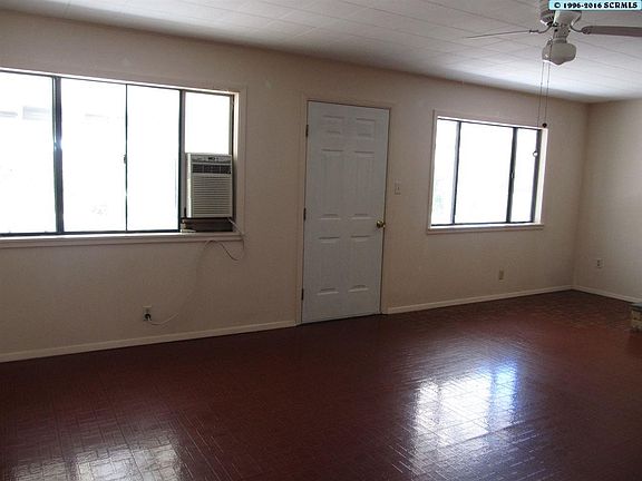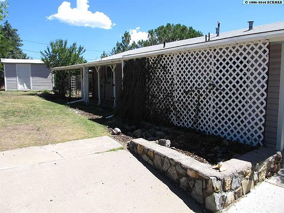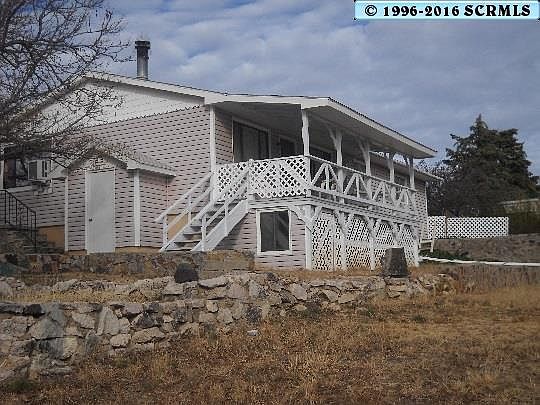 Nice little home with huge cover porched and fantastic distant views which includes the Kneeling Nun. Close by are the Boston Hill hiking trails. No upkeep needed on the house and garage siding. HUGE GARAGE with shop and lots of storage and counter top for projects. Built-ins included a Murphy Bed", built into the wall of one of the bedrooms. also bookcases. This bedroom was used for an office, but certainly multi-purposed with the drop-down Murphy bed. Shed is 12 X 10, and has same siding as the house and garage. Currently used for garden tools. There is an underground sprinkler system with controls. AC window unit included in sale.