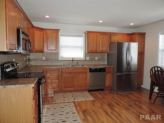 2-3 BEDROOM RANCH WITH OPEN FLOOR PLAN AND GORGEOUS WOOD LAMINATE IN THIS ONLY 4 YEAR OLD HOUSE! LARGE YARD! STAINLESS STEEL APPLIANCES! WHIRLPOOL TUB IN MASTER BATH AND WALK IN CLOSET. CONVENIENT LOCATION CLOSE TO INTERSTATE AND MINUTES TO DOWNTOWN PEORIA & EAST PEORIA. CENTRAL LOCATION. POSSIBLE 3 BR IF DINING ROOM CONVERTED BACK TO BEDROOM. SHOWS VERY NICE. LARGE KITCHEN AND BUILT IN DESK AREA. ASSOCIATION FEE INCLUDES SNOW REMOVAL AND LAWN CARE.