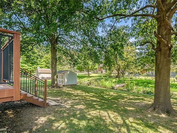 Welcome to this ranch home offering true main-level living with 3 bedrooms and 2 full baths on the main floor. The expansive kitchen features ample cabinetry, a large island, pantry, and walks out to a covered deck that was raised and leveled in 2022—perfect for entertaining or relaxing. The fenced backyard offers both space and privacy, complete with a charming bridge that crosses a creek and provides access to the full depth of the property. The spacious great room is filled with natural light and showcases a floor-to-ceiling stone fireplace, vaulted ceilings, and plantation shutters. A generous covered front porch provides another inviting outdoor space to enjoy. This home also offers the convenience of main-level laundry, adding to the ease of everyday living. The lower level is partially finished with drywall, built-in cabinets, and a full bath already in place. With flooring as the primary item remaining, it wouldn’t take much to complete the space and nearly double the home's square footage. The property has been thoughtfully maintained over the years. Maintenance-free vinyl siding and new windows were installed just three years ago, and the exterior shed was added two years ago. The sump pump and gutters were replaced seven years ago, and the furnace was updated eight years ago, giving added peace of mind. Conveniently located with easy access to highways, shopping, and dining, this home combines comfort, updates, and room to grow in a desirable location.