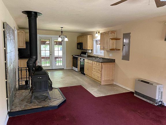 MLS# 254025 Every inch of this two-bedroom, one-bath, 718 sq ft home is wisely used and features an open concept kitchen-dining-living room with central wood fireplace and covered porch for added living area. Surrounded by mature trees, theres almost always a perennial in bloom in the fully fenced yard. Enjoy the privacy and relax by the fire pit and soothing fish pond. It will be hard to find another property at this price with detached 18 x 20 garage shop with electricity, 2 bay parking, and storage! Updates include a brand-new roof (installed in October) and electric panel! Fresh paint throughout. Newer windows and hot water tank. Set up a showing for this unique property!