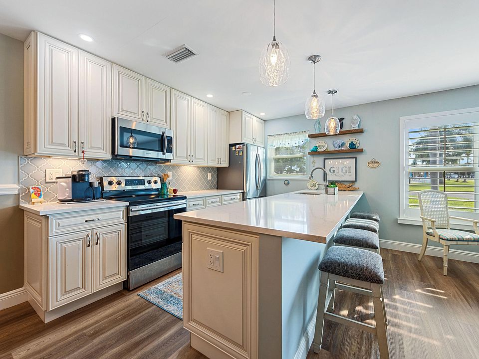 Picture Perfect describes this remodeled 1 bedroom/1.5 bath villa-style condo in High Point Section 4, located across the street from both pools & clubhouse. Roof 2022. Impact windows. Open kitchen with raised panel cabinetry, quartz countertops, pull outs, stainless steel appliances. Consistent flooring throughout. Large bedroom w/ 2 walk-in closet plus an remodeled bathroom that offers a step-in shower w/ a bench seat. Florida room makes a perfect place for guest or an at home office. Patio overlooks large greenspace. High Point Sec 4 offers a low HOA w/ so much value including building insurance, lawn care, cable/internet, recreational facilities & more. Furniture is negotiable w/exclusions. (Note Association requires a 650 min credit score)