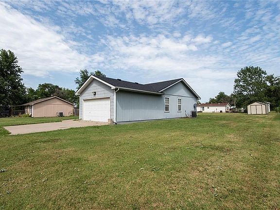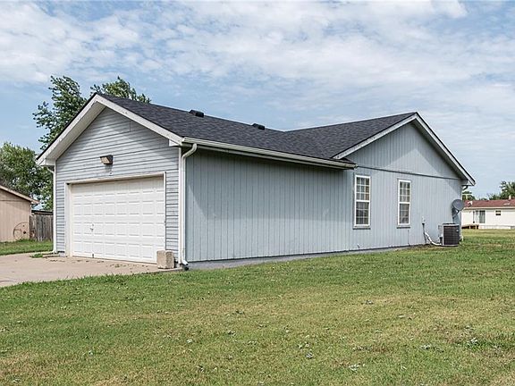 Beautiful Ranch-Style home! Move in ready with new roof in 2020 and new central heat and air was installed in February 2023. This home sits on a large lot built in 1997, this home has everything. 1,008 square feet 3 bed, 2 full bath with an attached 2-car garage. The shed in back will stay with the property. If you're looking for small town living, look no further. Just an hour drive to downtown KC, don't let this one slip by!