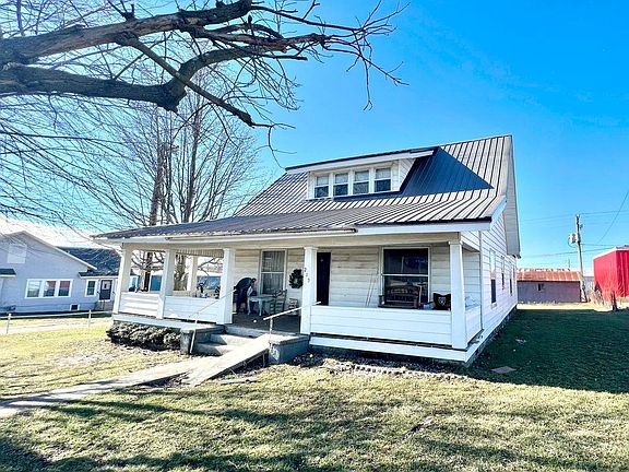 Home with charm for sale in Mtn. Grove, MO. This home with wrap around front porch has a nice back yard and large shed 42x14 with additional covered area. Inside you will find wide moldings, high ceilings with a large living room, dining room, 3 bedrooms and 1 1/2 bathrooms. There is also a partial unfinished basement for additional space. Home with central heat and air is also maintenance free with a metal roof and steel siding. Located walking distance to local stores and area amenities. Check out this affordable living space located in the rural Ozarks of Missouri.