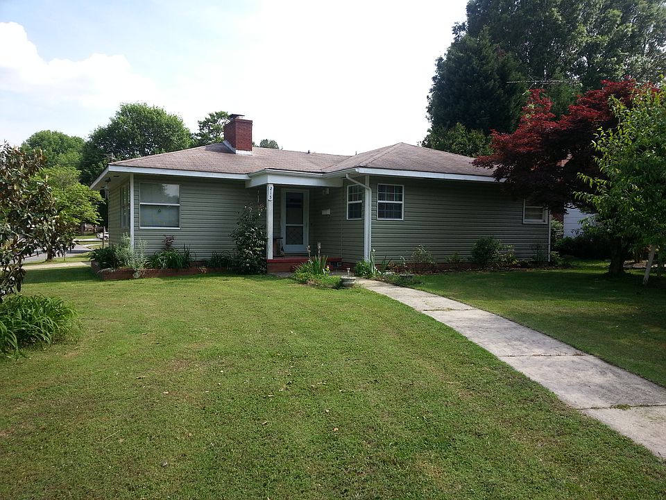This house it is located in a quiet neighborhood; a five minute walk to the park and a short drive to the hospital. It is a corner lot, so you'll have plenty of front yard; the yard has been loved by us as we have planted a magnolia tree, two apple trees, and created a flower garden. There are two huge Japanese Maples in the yard as well, which are glorious to behold. It is walking distance to Food Lion and restaurants like DJ's, Hendrix, and Palms. Most rooms have been updated within the past 4 years; with the inclusion of a master bedroom and bathroom. The first thing you’ll notice is the original oak wood floors throughout the house (except for the kitchen, bathrooms, and master bedroom addition). The living room is very spacious, with a fireplace which can be outfitted with gas logs or an insert for burning wood. The kitchen has been updated with ceramic tile floors, pre-fab cabinets (upper and lower), black Formica counter-tops, a deep, stainless steel double bowl sink, and a closed-in pantry. We have extended the kitchen for a dining room or playroom. This room opens up to a brick back patio which is perfect for grilling out or sun bathing! With a privacy fence to separate you from the neighbors and a pallet fence so your dogs can run around safely in the lush grass. A pre-fab outbuilding painted up like a barn is a great place to store your lawn mowers and extra clothes for the winter. It has been hooked to 110v with its own separate panel box so you can have plenty of power when you need it. The 21x23 attached garage has plenty of storage with huge cabinets on either side; a workbench in the middle provides plenty of room to service your vehicle if so inclined. We have been able to park an F-150 and Toyota Camry side-by-side with breathing room. The panel box has also been configured so you can run the necessities with a generator if you have a power outage. There is an entrance to the house just outside the garage and inside the garage; both lead to a mud room to keep your shoes and other outside gear. This mud room leads back to the living room, which is where you'll want to spend a lot of your time. From the living room, you'll walk down a hallway to find the first bathroom with linen closet on the left, and a bedroom right across the hall. This bedroom would be perfect for a nursery or office, as it has a small, but deep, closet and a great view of the front yard through the updated windows. Traveling down the hallway, you’ll pass by a laundry area with shelves and an over-under washer/dryer combo (which is a huge space saver!). At the end of the hallway, you'll encounter the master bedroom and the third bedroom. The last bedroom has a giant closet with plenty of room to hang all of your clothes. The master bedroom is about the size of the living room, with its own separate bathroom with walk-in shower. The master bedroom also has electric heat, just in case you get cold during the winter months.