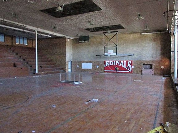 317-250-7570 Joell Palmer. $60,000 The neighbors of Milroy are amazing people. 70,000 Sq ft. 5 Acres. Two Gyms. Double Decker Theatre. 45+ rooms. Two Car Garage. Two Playgrounds. Two Baseball Diamonds. Football field. Two Full Outside Basketball Courts / Tennis Court. Was used as a school in 2008. Copper stripped. One small leak in roof. Forest and Flatrock River runs to the West. Thank you