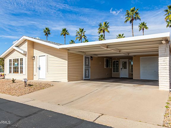 Remodeled gem in a vibrant community! This home shines with natural light, a walk-in closet, and a brand-new ensuite bath. With four entrances, including an Arizona sunroom, enjoy seamless indoor-outdoor living. The backyard oasis, surrounded by desert landscaping and mature citrus trees, invites tranquility. Community perks include sports courts, pool, fitness center, and a clubhouse with varied activities. The clubhouse, the hub of community activities, hosts events such as arts and crafts, pottery making, and lively holiday parties. For added convenience, the community provides transportation services to groceries and local amenities. Embrace comfort and community in this beautifully updated home!