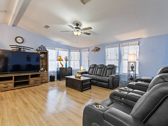 This stunning 2 bed, 2 bath home offers an open concept floorplan with cathedral ceilings, bay windows, and stylish vinyl flooring. The modern kitchen features a cooktop island, ideal for gatherings. Relax in the glass-enclosed Arizona room or on the large patio with 2 new refreshing mister systems cooling the full outdoor space. The primary suite includes dual walk-in closets. A laundry room with 2025 appliances adds ease, while extra parking for guests on an epoxy sealed driveway completes this perfect blend of comfort, style, and functionality........ .........HVAC, blinds, fans and fixtures - 2023 .........Water heater, refrigerator & oven -2024 .........Washer/dryer - 2025 .........Dishwasher - 2023............................................................................................... Experience the Thesman Lifestyle at LasPalmas, an active 55 plus land lease community where luxury meets affordability. For over 40 years we have set the standard with world class amenities and year-round activities. LasPalmas is a 24-hour gated community, with a beautiful 20,000 square foot clubhouse including ballroom, fireside lounge, library with computers and individual rooms for cards, billiards, arts & crafts and fitness center. Enjoy outdoor amenities heated pool & spa, BBQ area, pet park, sport courts for pickleball, tennis, bocce, shuffleboard and basketball. Our activities director assures a full calendar of social and recreation events. Our shuttle bus makes it easy and convenient to attend sporting and special events, plus local shopping. Whether you want to relax or stay active our vibrant communities offer everything you need to enjoy life to the fullest. Discover LasPalmas and start living the Thesman Lifestyle today! This 2-bed/2-bath sanctuary boasts a new roof completed 2023. This open floorplan showcases a bright kitchen, complete with a center island and granite countertops. The spacious living and dining areas are cheerful and open and perfect for entertaining with plenty of bay windows with plantation shutters. Retreat to the large primary suite with double closets and a luxurious attached bathroom featuring a large soaker tub and walk-in shower. Outside, the Arizona screen room and patio offer outdoor bliss, while a sizeable shed provides extra storage space. Enjoy a double carport for vehicles and a small garage for a golf cart, motorcycles and/or toys - this home is right across the street from the green belt and a short walk to guest parking.