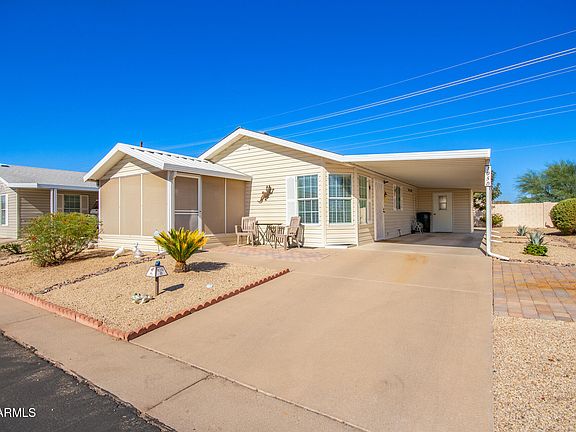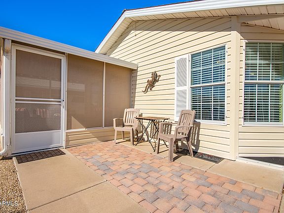 Stunning 2 Bed/2 Bath with 2019 HVAC, 2022 Roof and open floor plan in the Gated Active Adult community of Las Palmas in Mesa. Beautiful kitchen with light grey cabinets, stainless steel appliances, island seating and backsplash. Spacious living room with access to screened sunroom. Large primary bedroom with it's own bathroom. Las Palmas has an RV Storage yard. Enjoy the heated pool/spa, sauna, tennis & pickleball courts, basketball, bocce, billards, fitness center and pet parks. Shuttles also available to the nearby mall, restaurants & medical facilities such as Banner Baywood. Between the freeway access and nearby attractions this community has it all.