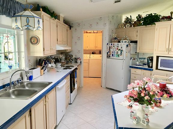 Las Palmas is a world-class manufactured resort community and this is a rare find! This beautiful home features a spacious island kitchen with plenty of cabinets. Nice open floor plan, enclosed Arizona room, covered patio, and 2 car garage. Fully furnished, Newer roof, New hot water heater,concrete walks colorfully coated.. Don’t miss this one!