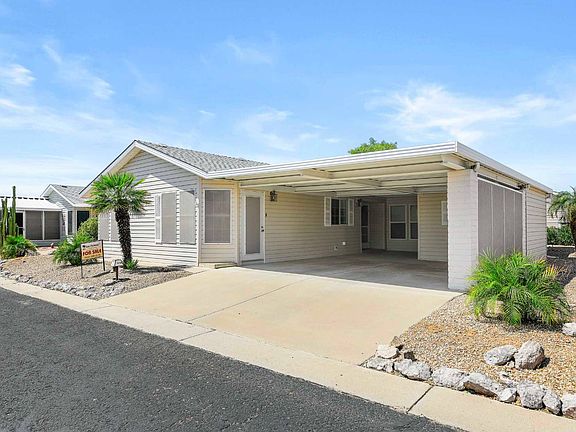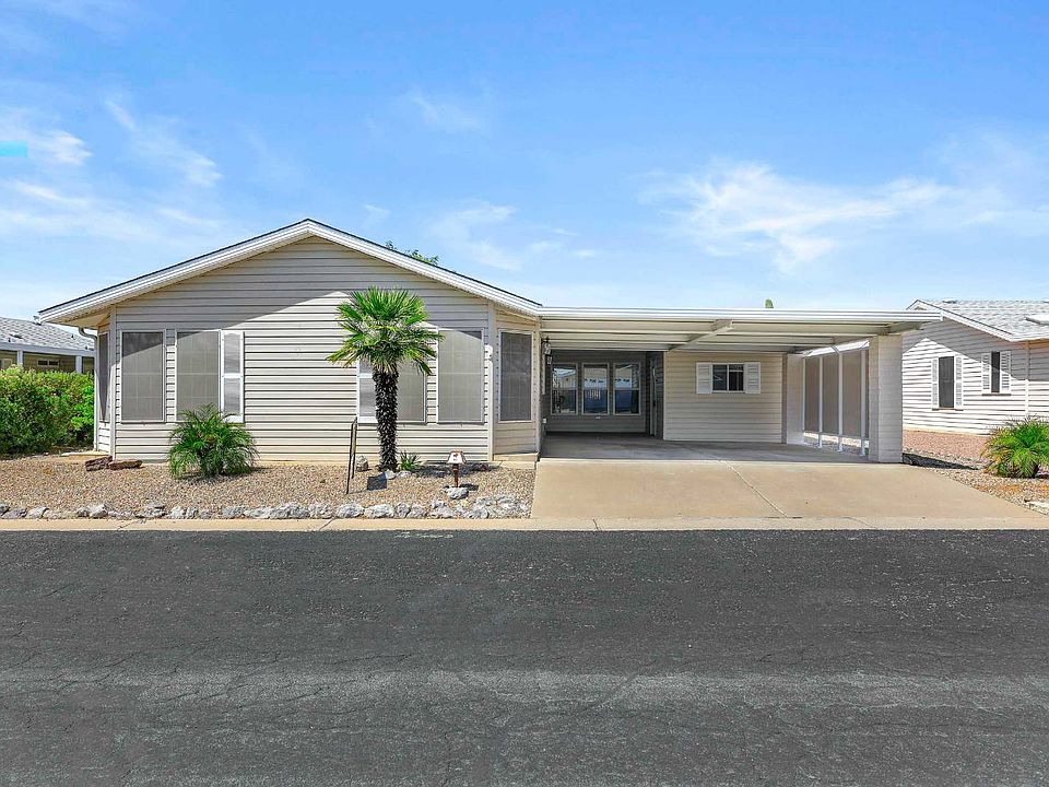 This meticulously maintained and stylish 2-bedroom, 2-bath home offers a large eat-in island with a cooktop. The kitchen boasts a stone backsplash and elegant black appliances and is set within a bright open floor plan featuring cathedral ceilings and ample bay windows that flood the living, dining, and kitchen areas with natural light. The home boasts chic accent painted walls & durable hard flooring of vinyl and tile throughout. Enjoy year-round comfort in the enclosed, drywalled & tiled AZ room which includes a climate control split unit. Enjoy the outdoors in a covered and tiled outdoor patio and even an open patio wrapping around the backyard. Conveniently, there's a 2-vehicle carport. This residence is ideal for those seeking both functionality and aesthetic appeal INTERIOR FEATURES Decorator vinyl flooring that never needs waxing Cathedral ceilings throughout Dishwasher and disposal High-pressure laminate countertops and backsplash Raised snack bar Deluxe accented fixtures in baths Upgraded front door with deadbolt Six-panel interior passage doors White interior trim Patio lights at all exterior doors Silent light switches Smoke detector Two exterior electrical receptacles New Flooring Freshly Painted Interior Kitchen Island Luxury Vinyl Flooring Great Outdoor Space Glassed In AZ Room All Seasons AZ Room Open Concept Living Zero Carpet Bright and Cheery EXTERIOR FEATURES Lavish desert landscaping Automatic watering system Vinyl lap siding 4/12 pitch roof with residential eaves, gutters and downspouts White vinyl exterior trim and shutters Water line connections with brass and copper fittings and shut-off valves throughout Exterior hose bib Weatherproof exterior outlets Great Outdoor Space ................................................................................................................... East Valley's Best of the Best! Experience the Thesman Lifestyle at LasPalmas, an active 55 plus land lease community where luxury meets affordability. For over 40 years we have set the standard with world class amenities and year-round activities. LasPalmas is a 24-hour gated community, with a beautiful 20,000 square foot clubhouse including ballroom, fireside lounge, library with computers and individual rooms for cards, billiards, arts & crafts and fitness center. Enjoy outdoor amenities heated pool & spa, BBQ area, pet park, sport courts for pickleball, tennis, bocce, shuffleboard and basketball. Our activities director assures a full calendar of social and recreation events. Our shuttle bus makes it easy and convenient to attend sporting and special events, plus local shopping. Whether you want to relax or stay active our vibrant communities offer everything you need to enjoy life to the fullest. Discover LasPalmas and start living the Thesman Lifestyle today!