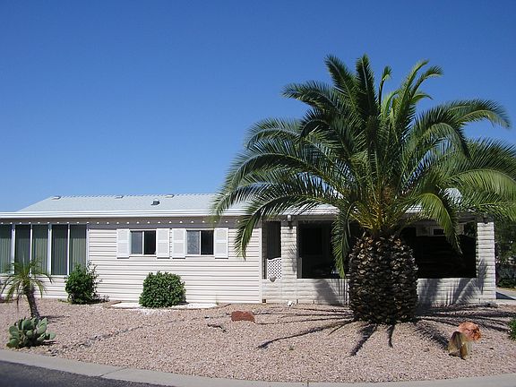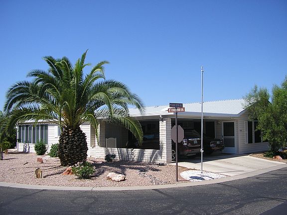 Las Palmas is a world-class manufactured resort community and this is a rare find! This gorgeous Cavco home features an all new custom kitchen with 2 pantries , granite counters, oversized island and all new upgraded appliances. Fully tape and textured, new water resistant laminate floors and 5 inch baseboards. Enclosed 700sq foot AZ room with AC. Home sits on prime corner lot Covered parking and EZ care desert landscaping. Plus…Location, Location, Location. Walkable to clubhouse - EZ to enjoy the amenities and year-round activities - INCLUDED! Las Palmas is one of the most sought-after Active 55+ communities in Arizona. We are a 24-hour guard-gated resort. Come rejuvenate, or just relax!