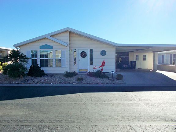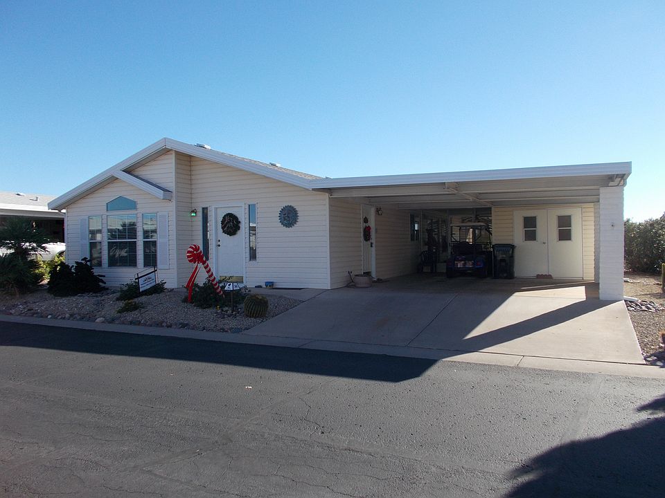 OPEN HOUSES:("Call. 1st".). __REDUCED FROM __$90,000to__$88,000.....Come live in in this CUSTOM HIGH.. ENERGY HOME situated on a PRIVATE PREMIER LOT. TAPE & TEXTURED-FRESHLY- PAINTED, Its spacious floor-plan with a family room is perfect for entertaining. “Open Concept” and very spacious living room with lots of windows opens to the formal dining area. A beautiful NEW Chandelier & Matching Hall Light. Entering thru carport you come into the laundry room w/cabinets above NEW WASHER, dryer & broom closet & pantry, The Island kitchen with lots of LOOK LIKE NEW, CABINETS and NEW PULLS & HINGES., plenty of counter space. S/S Refrigerator with thru-the-door ice and water dispenser giving easy access to cold beverages thru Reverse Osmosis under sink. Armstrong NEWER FLOORING THAT RESISTS WATER LEAKS and a LARGE SKYLIGHT for natural lighting. NEW DEEPER. double porcelain sink. Adjacent to the kitchen is the comfy family room with a sliding glass door and a pet door to the VERY LARGE AZ. RM. with NEWER CERAMIC TILE. FLOORING. From Family Room walk through DOUBLE DOORS to master bedroom suite: very spacious accommodation for large furniture, huge walk-in closet, DOUBLE DOORS into Master Bath, 2 separate sink vanities, NEW FAUCETS, garden tub, VERY Large shower, with glass sliding doors, 3 cabinet linen closet, SKYLIGHT, and a separate commode area with NEWER HIGHER RISE TOLIET. There are many upgrades throughout this beautiful home such as: built-in surround sound, 5 ceiling fans one in every room, newer light fixtures throughout, 6-panel doors throughout house, "NEW"SHINGLE ROOF, "NEWER" HWH & HEAT PUMP, and oversized storage shed with double doors in front and single door in AZ RM. Call for appointment: I will call front gate, they will allow you through the gate to " "#36", this is a secure community!!! MAKE ME AN OFFER... .DON'T PROCRASTINATE.........NEGOTIATE........ Lived here 20 years, and I love the community. Need to move closer to Family......... The beautiful back yard with citrus trees and the covered patio are perfect for entertaining and enjoying the sunny Arizona weather with family and friends. Whether you're looking for a permanent home, or needing a place to vacation, you'll enjoy everything this HOUSE and RESORT COMMUNITY have to offer!!! This great home is ideally located in an exclusive, pet friendly, w/doggie park just down my street, ACTIVE, " GATED RESORT COMMUNITY ", "YOU ARE PURCHASING A HOUSE "and "A LIFE STYLE". "NOT JUST A HOUSE", conveniently located near golfing, shopping, restaurants, medical facilities and freeways. "CALL TODAY"......... For additional information and to set "APPOINTMENTS" Call MARYANN at phone # at the end of this listing!!! TO BE ADDMITTED THRU GATE THIS IS A VERY SECURE COMMUNITY............ NO SALES TAX ON PRE-OWNED HOMES! ALSO, TITLES LISTED W/ "MVD"' HOME SELLS LIKE A CAR NO LAWYERS-NO EXTRA FEES-NO CLOSING FEES Las Palmas is an active 55+ ADULT RESORT COMMUNITY with a MULTIMILLION DOLLAR CLUBHOUSE, a full-time Activities Director that truly keeps you busy with anything you want, always a smile on her face and the finest in Resort. Amenities. Las Palmas features a heated pool, spa, putting green, shuffleboard, tennis, basketball, bocce ball, pet park, just at the end of the street and plenty of walking & biking. Inside the Clubhouse you'll find a fully-equipped fitness center with personal trainer, internet in library, ballroom, billiards, HDTV lounge, gourmet kitchen, card rooms, arts & crafts room, cards, cribbage, dominos, Bingo in ballroom in season, and an Activities Director who keeps a full calendar of social & recreational events for continuous entertainment.
