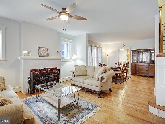 Nicely renovated 3 Story Colonial Home on Deep Lot with Off Street Parking and features 4-5 Bedrooms, Economical Gas Heat, Tall Ceilings, stunning refinished Hardwood Floors and new Luxury Vinyl Plank, Freshly painted throughout, Heated and finished third floor bedrooms, some replacement windows, Over-sized eat-in Kitchen with Mid-Century Quaker Maid Cherry Cabinetry, Extra Counter Seating, Gorgeous Brick Fireplace in Living Room, third bedroom has walk-out to covered Balcony with Westerly Views over the deep rear yard, and a wonderful Front Sitting Porch for those relaxing evenings rain or shine. Convenient Laundry in a very spacious basement with walk out steps to rear patio area and extra basement windows add great Natural Light, New Composite Front Porch, Expanded Parking Area for minimum two cars.
