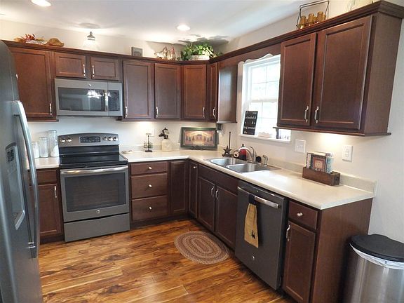 Like new home sitting in a neat neighborhood a short distance from the Parkway. The flooring throughout this beauty is wood laminate, & ceramic tile, with carpet in the bedrooms. Desirable floor plan with the living room and dining room open. Kitchen is amazing and includes the stove, dishwasher, and microwave. Bedrooms are good sized with full size closets. The Master BR is large and has a walk in closet and full bath. The home has 800 additional sq. feet of partially finished space in the basement, plus a double garage. Lots of potential for additional living space! There are two concrete pads for parking. One on the main level of the home and one at the basement level. You will not have to climb any steps to get into this home from the front door. The home sits on a corner lot and the neighborhood really is very nice and quiet. If you would like a home that is in move in condition and like new, then you should take a look at this one.