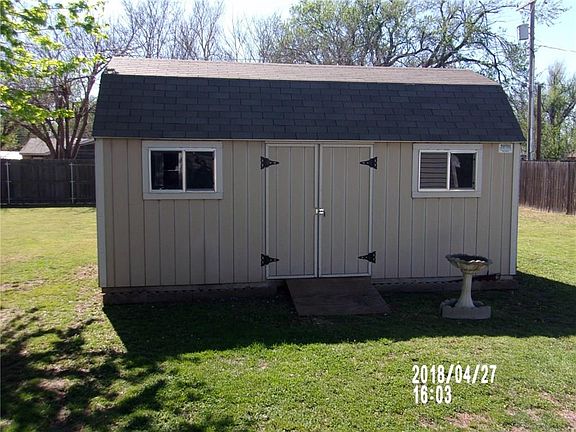 TALK ABOUT NICE- THIS PROPERTY IS WELL MAINTAINED AND HAS A LOT OF EXTRAS LIKE A WOOD DECK WITH STORM SHELTER IN A HANDY SPOT JUST OFF THE DECK. THERE IS A 12X20 WOOD BUILDING USED FOR STORAGE AND WORK SHOP IN BACK- EXTRA BIG YARD (3 LOTS) THAT HAS A WOOD FENCE. BIG 2 CAR CAPPORT COVERS THE DRIVE. INSIDE FEATURES 4 BEDS AND 1 BATH, BUT THERE IS PLUMBING FOR A 1/2 BATH IS IN THE MASTER BED- JUST NEEDS A STOOL AND SINK INSTALLED. SQUARE FOOTAGE IS ESTIMATED BASED ON A 4TH BEDROOM ADDED FROM SPACE USED FROM A VERY OVERSIZE GARAGE THAT WAS VERY BIG AND STILL HAS ROOM TO PARK AND AVERAGE SIZE CAR. SQUARE FOOTAGE IS ESTIMATED USING THE CORTHOUSE RECORDS AND MEASURE OF THE EXTRA BED WHICH IS 12X 20 FEET ADDED TO THE ORIGINAL 992 SQUARE FEET. BUYER TO VERIFY SQUARE FOOTAGE AND ANY INFORMATION PROVIDED ABOUT THIS PROPERTY.