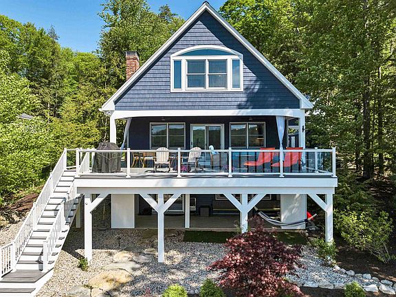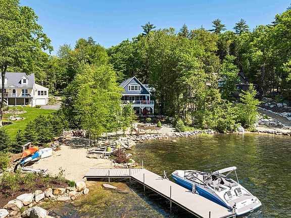 215 North Shore Road, New Durham, NH: A Lakeside Paradise Nestled on the shores of Merrymeeting Lake, one of the top three cleanest lakes in New Hampshire. This property is nothing short of special. This home offers stunning views while being protected from the elements. Facing south, the house enjoys abundant sunshine all day long and features a sandy beach area perfect for relaxation. Pleasant Cove is a favorite spot for loons, who are frequently seen in the cove due to its calm waters. As you drive down the tree-canopied driveway, you instantly relax. The property boasts multiple outdoor areas designed for enjoyment and comfort. The large deck, with both covered and uncovered sections, extends your living space during the summer. In the late afternoons, the platform near the dock becomes a favorite spot to unwind.The house itself is in pristine condition, (many updates done in 2020) featuring 3 BR's and three and a half baths making it ideal for YR living. No painting or mowing is needed, epitomizing carefree living at its best. A whole-house generator & central AC ensure comfort. For those who love outdoor activities, this home is perfect. The fire pit is a beloved spot, especially on spring and fall nights, providing a cozy place to gather.Across the lake, conservation land protects the land, ensuring the natural beauty remains untouched. Skiing, hiking, shopping, and restaurants are all nearby. Enjoy all 4 seasons. Showings begin at the open house on 6/1/24. 11-2.