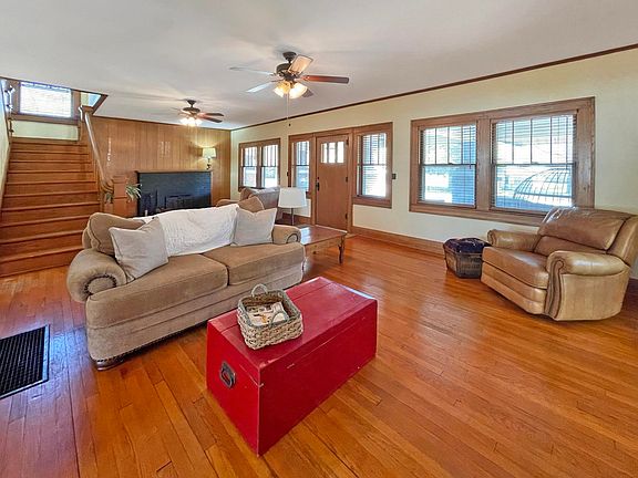 Don't miss your chance to see this gorgeous 2-story home on over a half acre lot in Leon! From the moment you walk through the front door, you will appreciate the gorgeous hardwood floors, the beautiful architecture and original woodwork, the openness and spaciousness of the living and dining rooms, the coziness of the fireplace, and all of the beautiful windows throughout the home creating tons of natural light. There is an office/den just off of the living room, offering the perfect space to work from home. In the kitchen, the refrigerator and gas range stay. Through the kitchen to the mud room/back porch area, is a lovely old farm style sink with vanity, that leads to the main level half bath, and the door to the basement. Back through the living room and up the gorgeous staircase will lead you to a huge hallway. There are four bedrooms, and a beautiful sunroom off one of the bedrooms. The character abounds throughout this home, inside and out! Don't miss this one!