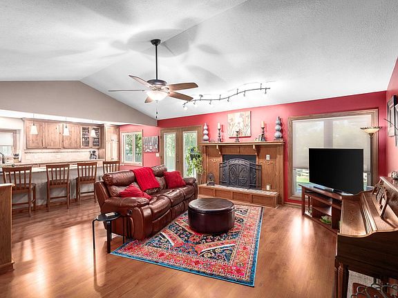 Open this Sunday 2-4pm.This stunning ranch-style home in Gleneagles offers a perfect blend of luxury and comfort, featuring 4 bedrooms and 3 baths. Over the years, the sellers have thoughtfully remodeled the home, showcasing an open floor plan with rustic beech kitchen cabinets, quartzite countertops, and stainless steel appliances. A custom-designed laundry room comes equipped with front-loading washer and dryer and granite countertops. The main floor’s kitchen and living areas are adorned with LVP flooring and dramatic vaulted ceilings, creating an elegant and warm ambiance. The remodeled owner’s suite includes a luxurious free-standing air bubble soaker tub, along with a spacious walk-in shower featuring dual shower heads. Large his-and-her closets, solid core doors, and high-quality trim add to the suite’s refined style. The fully finished basement is ideal for entertaining, with a theater area that includes a projector, which stays with the home. Additionally, a large wet bar, fourth bedroom, office, and exercise room round out the lower level. Outside, the tree-lined backyard offers privacy and backs up to 1-3 acre homesites, providing a peaceful retreat. The home also includes a sprinkler system, well, recently painted exterior, and an HVAC system approximately 7 years old. This property combines sophistication and modern conveniences, making it the perfect place to live and entertain.