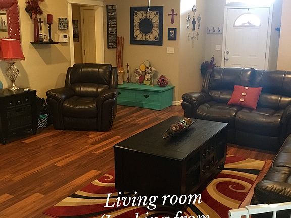 Beautiful home in Mountain Winds Edition that sits at the end of a cul-de-sac. 3 bedrooms, 2 baths and 2 car garage. High ceilings in living room, kitchen and master bedroom. Large master bedroom with his and her closets, Jacuzzi tub and separate shower. New laminate wood floor in all 3 bedrooms and living room. Tile in bathrooms, laundry room and kitchen. New rock wood burning fireplace and recently upgraded roof. Covered patio off the back of the house. Large backyard with 2 level deck and above ground swimming pool. Two large sheds in the backyard. Double car garage with custom shelving. Large eat -in kitchen with tons of cabinet and counter space. Stainless steel appliances. Friendly neighbors. Great neighborhood. Bricked mailbox. Beautiful landscaping and majestic view of the Wichita Mountains. Within minutes from Lawton/Ft Sill.