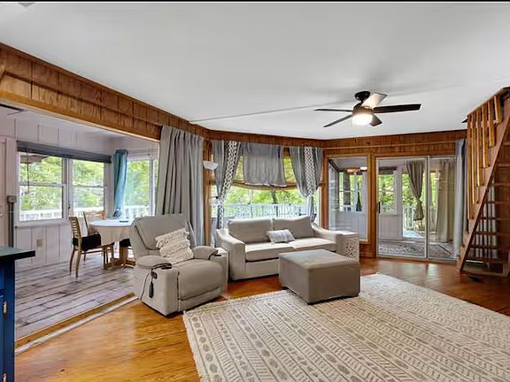 Private dockModern finishesExpansive wraparound porchMature treesSpacious -acre lotBreathtaking lake viewsLakefront cottage