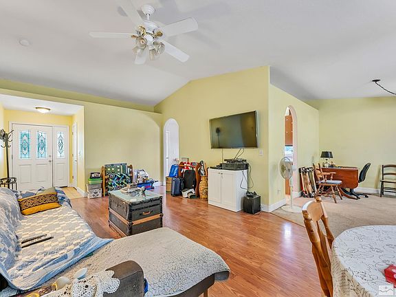 5 Acres!! Shop! Solar Power!! Privacy! Fully Fenced w/separate fencing for the immediate back yard. Landscaped front & back w/suto sprinklers. The home is 1795 sf w/ 3 bedrooms, 2 baths, 3 car attached garage, detached garage workshop w/enough room for 2 additional cars + a separate workshop with 220 power, heat & ac! Bring the toys and horses! The entry leads to the front living area then opens to the dining & separate family room w/ woodburning fireplace! The kitchen has plenty of cabinets, nook area, laundry room and pantry. Fresh exterior paint, fruit trees, great view and more. The solar power has been a money saver and is completely paid for and included in the sale! Call today!