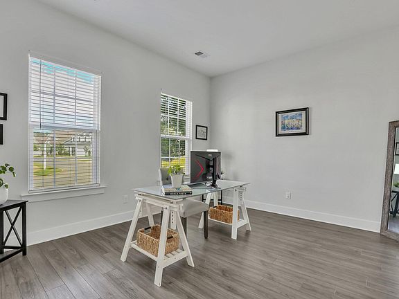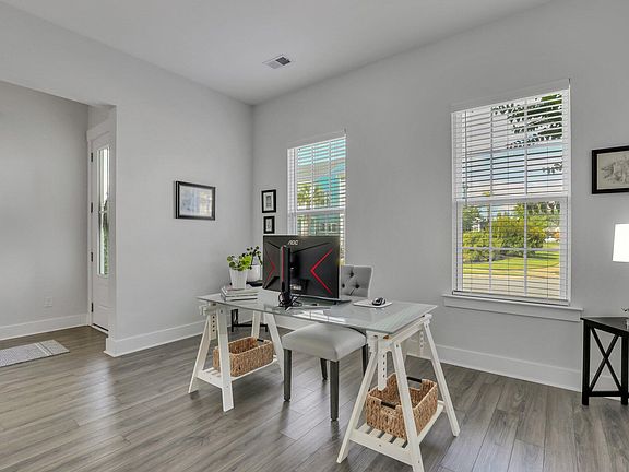 MUST SEE! Welcome to your next home, very well kept and feels brand new! Your going to love the amenity rich community of The Ponds. Come and see this stunning two-story residence that offers the perfect blend of elegance and functionality, boasting a serene pond view out back and an upgraded large screened-in porch oasis, perfect for relaxing and entertaining. Looking for a home that has an office and a perfect blend of functionality with modern touches? Look no further. You will love the open kitchen with the oversized island to entertain from. The very large pantry is perfectly tucked in under the steps to make no waste of this well thought out floor plan. Have a dog? You will love your daily walks to the dog park up the street surrounded by all the beautiful live oaks trees.One of the standout features of this home is its rare oversized two-car garage, providing ample space for vehicles and storage. As you step inside, you'll be greeted by a spacious and versatile office area at the front of the home, ideal for remote work or study. The Ponds community is renowned for its amenities and vibrant lifestyle, enjoy the convenience of an on-site YMCA, food truck events, and the charm of a large historic plantation home available for rentals. Dive into summer fun at the expansive pool, or enjoy the great outdoors with sports fields, a dog park, a kids' treehouse, and scenic walking and jogging trails. This home and community offer a unique opportunity to live in comfort and style. Don't miss your chance to own a piece of paradise in The Ponds!