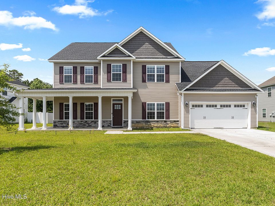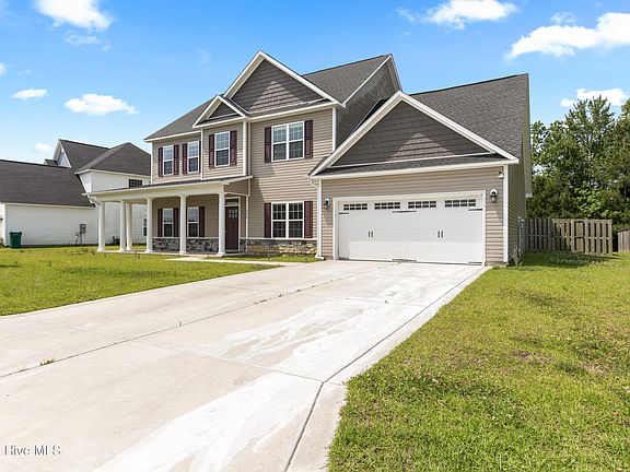 Welcome to your next home! This beautifully maintained and generously sized 5-bedroom, 3-bathroom residence is located in the Stones Landing at Onslow Bay and offers comfort, functionality, and room to grow. The first floor features a well-placed bedroom and full bathroom perfect for guests or a home office. Upstairs, you'll find the spacious primary suite along with the remaining bedrooms, all connected by an open hallway that overlooks the bright and inviting foyer. The expansive living area includes a cozy fireplace, creating a warm and welcoming atmosphere for relaxing or entertaining. You'll also enjoy a formal dining room and a front space that can be used as an additional seating area. Step outside to a large yard offering endless possibilities for outdoor enjoyment. The home also includes a two-car garage for added convenience and storage. With updated features, abundant natural light, and a versatile floor plan. Schedule a tour today and come see what makes this home truly stand out!