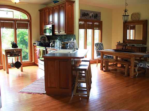 Two creeks, beautiful mature trees, 5 acres and your own private park are just a few of the features of this brick 3 bedroom home, located in the Burgin school district! Floor to ceiling windows frame the beautiful view from every room. The kitchen is central and open to the dining room area and the living room. The master bedroom and bath are spacious and separate from the other two bedrooms of the home. There is a fenced area for your sheep or other livestock, that has a seasonal creek running through it. The second creek on the property runs throughout the whole year and is abundant with trees and even some historic Kentucky rock fencing. There is a guest home on the property that is cozy and stylish and is currently being used as an Airbnb. It has two bedrooms and can be used as a mother-in-law quarters or space for extended family.