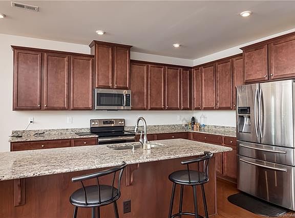 Just minutes from Matthews! Amazing opportunity to own a townhome with lots of luxury features! Gourmet kitchen with upgraded 42' CABINETS, GRANITE counter tops, HUGE ISLAND, STAINLESS STEEL appliances, and walk in pantry.Tile in both upstairs bathrooms. Beautiful master bath has DOUBLE VANITY and GLASS SHOWER with DOUBLE SHOWER HEADS that won't disappoint and SEAT BENCH. Many more great features. One car attached garage with additional parking space.