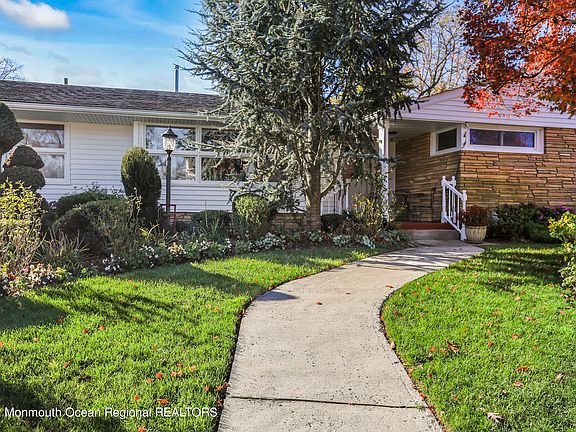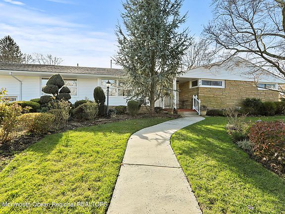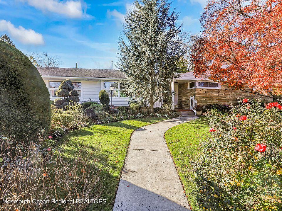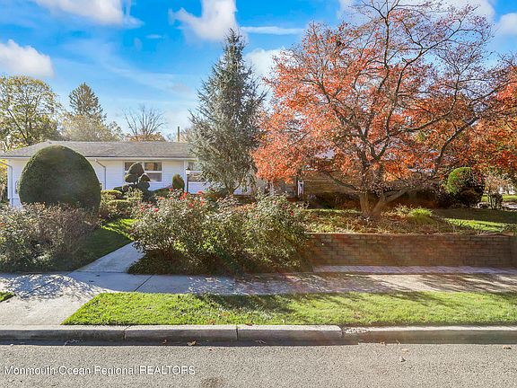 Don't miss this large expanded ranch in wonderful Colonial Terrace. This 5 bedroom, 3.5 bath home is beautifully landscaped on a corner lot in the neighborhood. Wood floors throughout, the front door opens onto a large living rm/dining rm combo with a fireplace. Other features include a large master bedroom with full bath, open kitchen with granite counters, island and eat-in nook, 2 guest bedrms with full bath on the east side and two guest bedrms with full bath on the west side. Bonus sunroom with skylights overlooks the backyard with a giant wall of windows. Finished basement include a bar , ½ bath and cedar closet. 2 car garage, backyard deck, new tankless water system and water purifier. Close to downtown Asbury Park and beaches. GSP, Rte 18 and NY trains are close by
