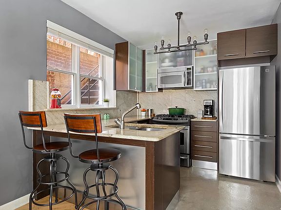 BESPOKE duplex condominium with TONS of storage is new to the market at 215 Parkville Avenue in Brooklyn's Kensington neighborhood. No detail was missed in the renovation of this massive space spanning over 1,000 square feet across two floors. This "maisonette" with custom woodwork and high-end fixtures throughout is like no other in the area. Prepare to be wowed! From the moment you walk in the custom details impress starting with a built-in shoe rack fabricated in cherrywood and metal. Then the first of many closets features a shoe drawer which will please any fashionista. This gracious and welcoming area is a perfect area to settle into the space. The open living area features a modern kitchen with peninsula island. Granite countertops, lots of cabinets, Kenmore Elite fridge along with GE Profile stove and dishwasher complete this cook's paradise. The living room is perfect for entertaining whether you're hosting a dinner party or movie night. Adjacent is a bedroom or office where you will find yet another closet. The full bathroom on this floor features a vanity handmade in the USA of tigerwood, Restoration Hardware light fixture above, redwood shelving and Eago toilet. Before you head downstairs take a moment to appreciate the redwood railing along the stairwell which was custom designed and fabricated. Then just before you enter the downstairs check out the bonus storage well in the landing of the stairwell (you can never have enough storage, right?). Downstairs is when you truly get the "maisonette" vibe. To start, you have room for a piano! Then two more closets (one extends under the stairwell for extra space) keep the momentum. A king size sleeping area is as cozy as it can get for sleeping in on the weekends. With enough room for large furniture and custom Brazilian hardwood shelving this space is truly a bonus on top of a bonus. And it doesn't stop there. A laundry room, closet and second bathroom complete the floor. A barn door flanks the entry where you will find cabinetry with butcher block countertop, custom redwood shoe storage and large LG washer & dryer. A maple pocket door with frosted glass leads you to the second full bathroom with amazing rain shower. With 12 units this well sized and managed condo is in a great location in Brooklyn's Kensington. Featuring a common roof deck this pet friendly building is calling your name. Equidistant to the B/Q trains at Newkirk Plaza and F train at 18th Avenue makes travel around the city a snap. Proximate access to Ocean Parkway's greenway will get you to either Prospect Park or Coney Island in a matter of minutes.