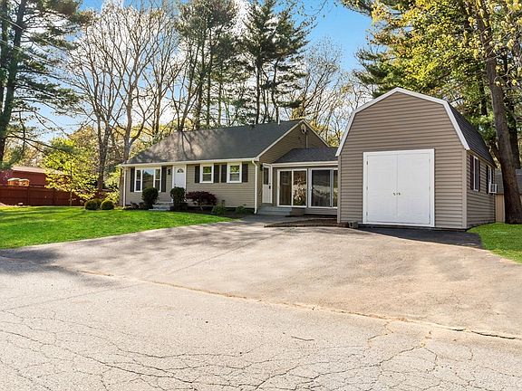 Nestled in a desirable cul-de-sac within a quiet neighborhood, this updated split-level home offers three levels of comfortable living just minutes from the MBTA East Taunton Station and shopping centers. The main level features a newly renovated dine-in kitchen with quartz counters, tiled backsplash, shaker cabinets, and new appliances. The interior has been freshly painted and offers new flooring throughout, plus central AC for year-round comfort. Enjoy a bright living room with a new window for added natural light. Upstairs, you'll find three bedrooms and a beautifully updated bathroom with a tiled tub surround. The lower level provides additional living space, a walk-out basement, and a utility/laundry room. Outside, relax in the sunroom with sliding doors to a paver patio and fenced yard. A storage shed plus a shed/workshop with electric complete the package.