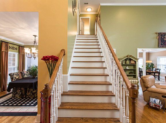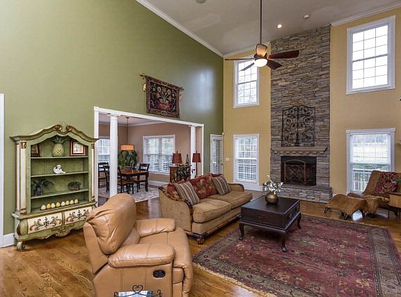 On the golf course & water in Barrington Hall. Beautiful updates throughout. Subway tile in kitchen with new Bosch dishwasher and solid surface counter tops. Oversized Great Room with volume ceilings and hardwood flooring. Two bedrooms on the main level including master bedroom with new ceramic tile shower and tub surround. Finished basement with game room, bedroom, full kitchen and bath. Extra room in basement could be bedroom or office. Deck across the entire back of the home. Three car garage plus beautiful landscaping. A Pleasure to see.