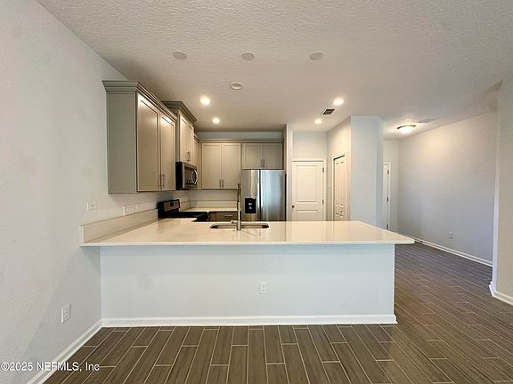 Enjoy this newer townhome offering one car garage and a lovely covered porch in the rear and a grassy area, walking distance to the community park and pool! Wood look tile on main level- open living/dining to the kitchen offering plenty of cabinet and counter space, pantry and door leading out to the garage. Upstairs you will find all bedrooms. Large Primary suite with walk in closet + ensuite- two sink vanities and walk in shower. Two other bedrooms share hall bathroom, and laundry is upstairs. In the heart of Silverleaf- a growing neighborhood with shopping, dining, and store. Close to highways and just minutes to the Durbin Pavilion area too!