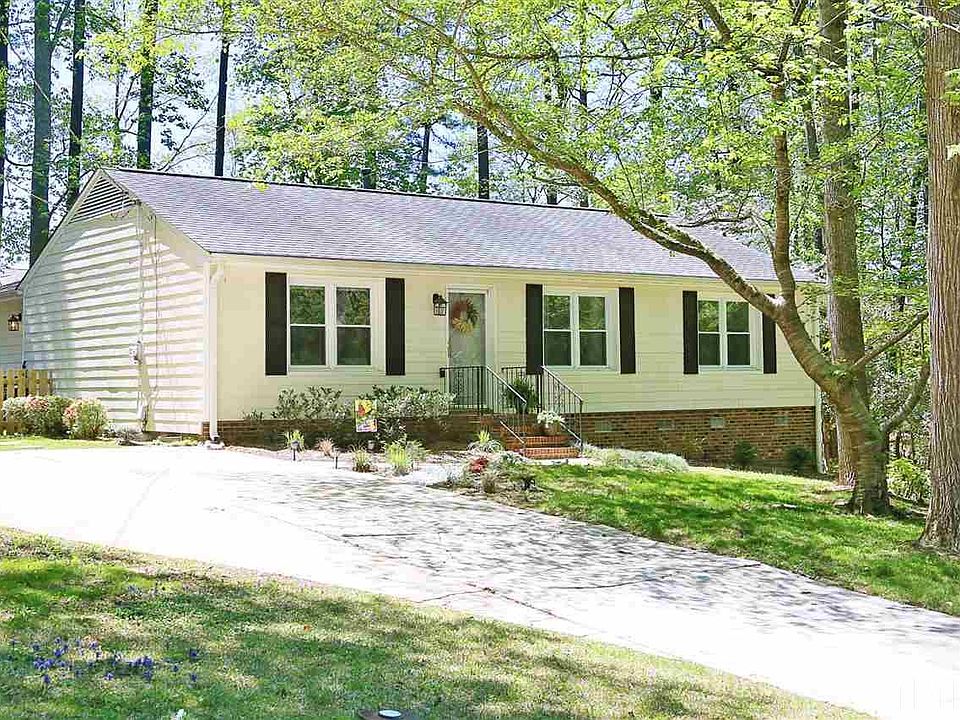 This is the Home you have been looking for! Very well taken care of 1 level living, with NO HOA, Walking distance to Charming downtown Wake Forest, over half an acre wooded lot at the end of the cul-de-sac. Open light floor plan with 3 bedrooms. 1.5 baths. Granite counter tops, wood floors, new carpet, skylights, recessed lights. fenced in back yard for the dogs or the kids, back and side decks, shed for the lawn mower. Do not let this Gem get away!