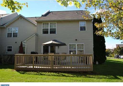 Exceptionally well maintained! This 3 bedroom townhome is an attractive end unit in the friendly and desirable Highlands community. The first floor has gorgeous new auburn laminate flooring throughout the entry, dining and living rooms. The spacious kitchen has a breakfast area, new flooring, and sliding glass doors leading to the largest permitted sized deck and backyard perfect for outdoor entertaining. First floor powder room is completely refinished. The second floor consists of a master bedroom with a four-piece private bath and walk-in closet, an adjacent laundry room, two additional spacious bedrooms and a large hall bathroom with a double vanity. The stairway and second floor hall carpets are brand new. One car garage and the driveway can fit 3 additional cars. HVAC was replaced in 2006 and new hot water heater in 2011. Walking distance to elementary school, playgrounds and gym; close to shopping center, restaurants, Rt 309 and train station. This beautiful home is priced to sell! 11/13/12
