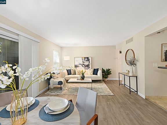 Location, location, location! Experience resort-style living at the heart of San Ramon in the Reflections gated community. Conveniently situated within walking distance of Starbucks, Trader Joe’s, Central Park, and the Bishop Ranch City Center. This ground floor, end unit condo offers a peaceful retreat with no attached neighbors on three sides. Nestled in the quieter south side of the complex, it has much to offer. The unit has been thoughtfully updated, featuring newer flooring and a fresh coat of paint. Enjoy the updated open kitchen and family room, seamlessly opening to a spacious patio. The bedroom offers ample closet space, while the in-unit stacking washer and dryer add convenience. The condo also includes a covered carport. Door to condo is in the Northesast direction. The Reflections community amenities include a pool, spa, sauna, picnic and barbecue area, fitness center, and beautifully landscaped grounds throughout the complex. Don't miss this incredible opportunity to own a piece of San Ramon's resort-style living.