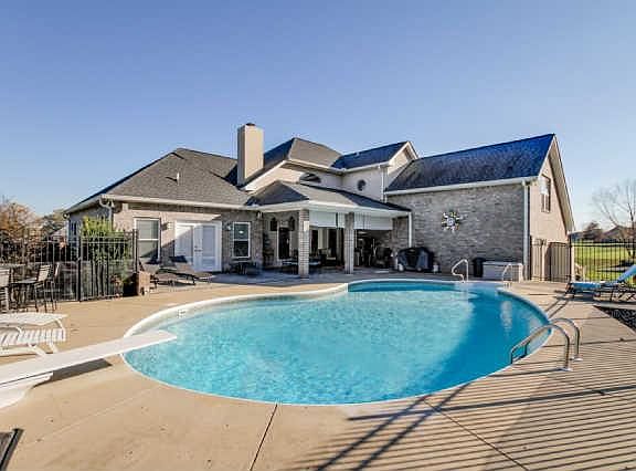 Custom built brick home with master suite on main level, kitchen has double ovens and is open to the living area, fireplace, formal dining room, two bedrooms upstairs with office and bonus room Covered area with inground pool Surround Sound