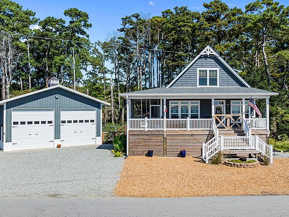 Welcome to a truly special waterfront retreat perfectly situated on the expansive Neuse River. This practically new home (2023) offers peaceful seclusion, unmatched natural beauty, and a thoughtfully layout blending everyday functionality with timeless décor. Boasting 3-bedrooms, 2.5-bath with main-level primary suite with serene river views. The open floorplan is anchored by a stunning kitchen with shaker-style cabinetry with full-extension pull-out drawers, granite countertops, range hood, oversized island, and stainless steel appliances. A spacious living room showcases a cozy gas-log fireplace & large windows that framing breathtaking water views. The formal dining area offers elegant craftsmanship with coffered tray ceilings, and crown molding throughout. Step outside to a wraparound rocking chair front porch & screened side porch. Property Highlights include: private 110-ft concrete pier with water & electric, and 20' x 20' dock house platform. A new boat lift & 2 waterfront RV hookups ideal for additional weekend guests. A 30' x 40' barn—ideal for storage, gatherings, or water toys. The 18-ft above-ground saltwater pool with deck offers additional summer fun. A full home Generac generator provides convenience and peace of mind. Lastly the boat house is a timeless staple to the community and provides an additional 10' x 20' private flex space with a full bath ideal for a guest suite or office. Beyond the property, enjoy excellent fishing and quick access to the NC Ferry System. You're also near beloved coastal camps like Don Lee Retreat Center, Camp Caroline, Camp Seafarer, and SeaGull. Just a short drive away, discover the historic charm of New Bern and the sailing culture of Oriental-proudly known Capital of North Carolina. Whether you're seeking a full-time residence or a cherished getaway, this rare offering is your chance to claim riverfront paradise.