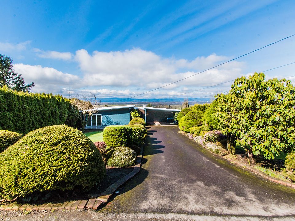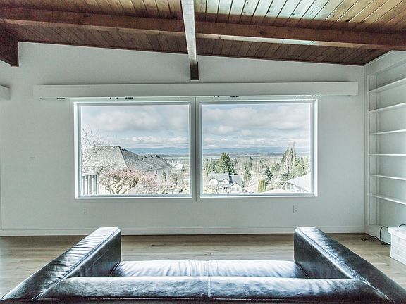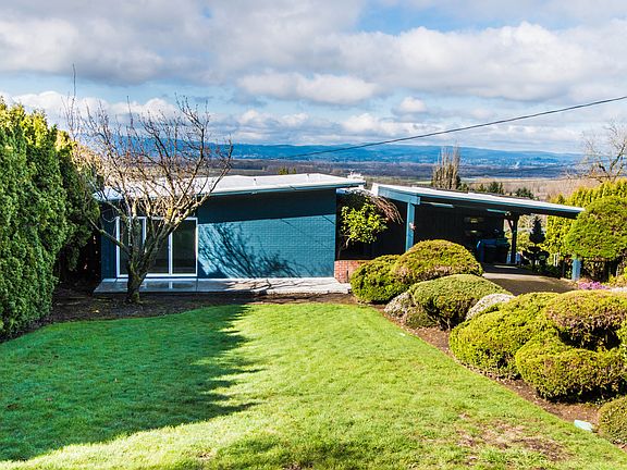 Iconic Mid Century Modern on Ridge! 180 degree view of the Ridgefield Wildlife Refuge & Columbia River from both floors! Every inch of this home has been updated. New roof,new stainless appl,new paint,energy efficient windows,ductless heat pump systm. Original hardwood flooring. Huge yard supports a fully lit gas-heated in ground gunite pool with diving board. Enjoy living the vacation life every day in this Hollywood hills style home.