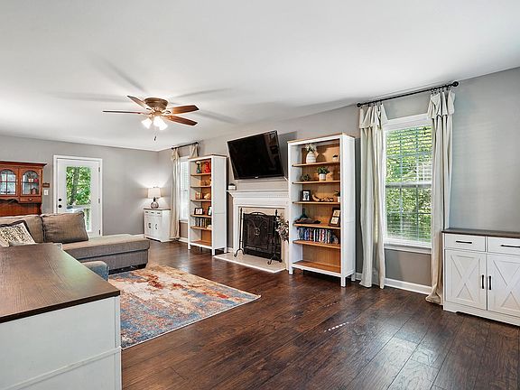 Gorgeous Home on Spacious Half-Acre Lot! Welcome to this beautifully maintained home that blends charm, comfort, and functionality on a lush half -acre lot. Featuring 3 spacious bedrooms, 2 and a half bathrooms, and a HUGE bonus room perfect for a playroom, a home office, or media retreat! You'll love the warm ambiance of the stunning hardwoods throughout the main floor, and the cozy wood burning fireplace-ideal for chilly evenings. The eat-in kitchen offers a charming breakfast nook with built-in bench seating that doubles as storage, seamlessly combining style and practicality. Step outside to your private backyard oasis, complete with a gorgeous 2-tiered deck with integrated storage benches and a fire pit area- perfect for relaxing or entertaining under the stars. Additional highlights include; Secondary owners closet currently set up for a private office, a well-organized garage with overhead storage, customized can goods rack, newer roof (2021), new water heater (2023), new dishwasher (2022) and freshly paved community streets. This home is move-in ready and offers a perfect blend of indoor comfort and outdoor serenity. Don't miss the opportunity to make this dream home yours!