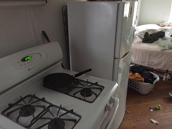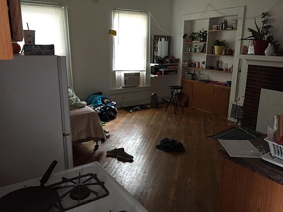 Studio with three seasons front porch and non-operable fireplace. Closet, newer refrigerator, newer stove, sink, large room allows queen size bed, couch and desk. Hardwood floors, bathroom, shower/tub combo, toilet and sink. Coin operated laundry, parking, walk or bus downtown. Includes all utilities, except cable, internet or telephone. 360 day lease.