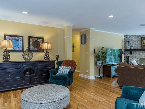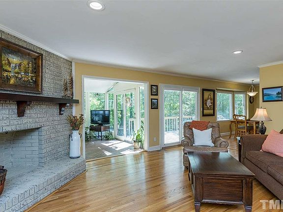 This is the MacGregor Downs home you have been waiting for! Great curb appeal on almost 3/4 acres! Wide open floorplan makes this the perfect home for entertaining. Site-finished hardwoods & wood burning fireplace. Kitchen features granite countertops, gas range, and brand new appliances. 1st floor master + 1st floor guest suite. 2 huge bedrooms upstairs with great bonus space & wet bar + walk-in storage area. Cozy sunroom with brick floor overlooking wooded, private backyard. New roof. Must see!