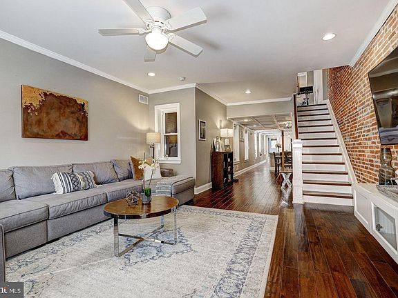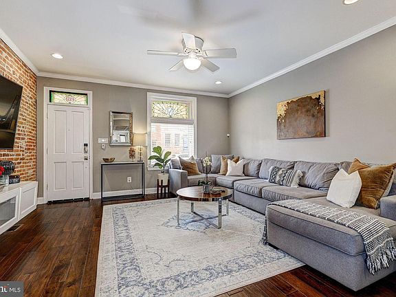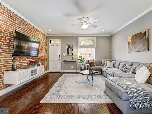 This absolutely remarkable townhome conveniently located in Butcher's Hill has it all! Stunning rooftop deck with panoramic views of Baltimore, private fenced back patio, 2 car parking pad, brick accent walls and completely renovated blending modern amenities with delightful charm throughout. Soaring ceilings, sun drenched windows, a calming neutral color palette, recessed lighting, custom millwork and gorgeous hardwood floors grace this spectacular home. Prepare your favorite chef-inspired meals in the gourmet eat-in kitchen fully equipped with gas cooking, stainless steel appliances, granite countertops, tile backsplash, soft close cabinets, pantry and a breakfast nook. The dining room is highlighted by a coffered ceiling, sparkling chandelier and a breakfast bar perfect for casual meals. Ascend upstairs where a cozy den awaits, perfect for lounging and includes a wet bar with sink, beverage fridge, wine storage and steps leading to the rooftop deck. Unwind in the primary bedroom suite adorned with two closets and a luxurious private bathroom featuring a massive tile walk-in shower and dual vanity. A second bedroom and full bathroom complete the upper level. Enjoy an array of dining, shopping and Patterson Park right outside your front door! 1 year remaining on CHAP tax credit.