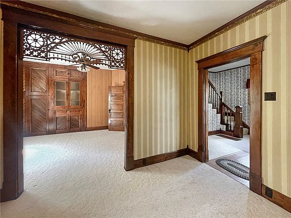 This 2-3 bedroom, 2 bath home boasts all the charm! Situated on .73 acre, it features original, unpainted, woodwork, beautiful built-ins, large rooms and plenty of natural light. The kitchen features locally made cabinets, and a breakfast nook. The laundry room is the perfect space to set all of your things coming in from outside. Upstairs you will find a large bedroom with a small reading nook or play area, and a large open area that could be another bedroom or living area. The unfinished basement will accommodate your projects or extra storage. Grab a chair and a book and listen to the birds in your own oasis, it's so peaceful you will forget you're in town. If you love character, don't let this one get away!